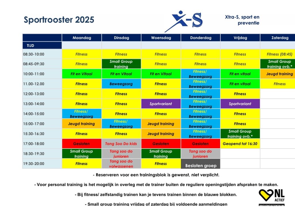 Let op, tijdens de bouwvak weken hanteren wij een zomerrooster. Deze kunt u opvragen bij de trainers en zal ook op onze socials gedeeld worden.